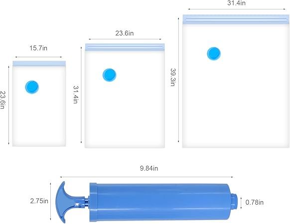 π§³ 5 Pack Storage Bags + Hand Pump β Includes 5 reusable vacuum storage bags in assorted sizes, plus a compact suction pump for easy air removal.